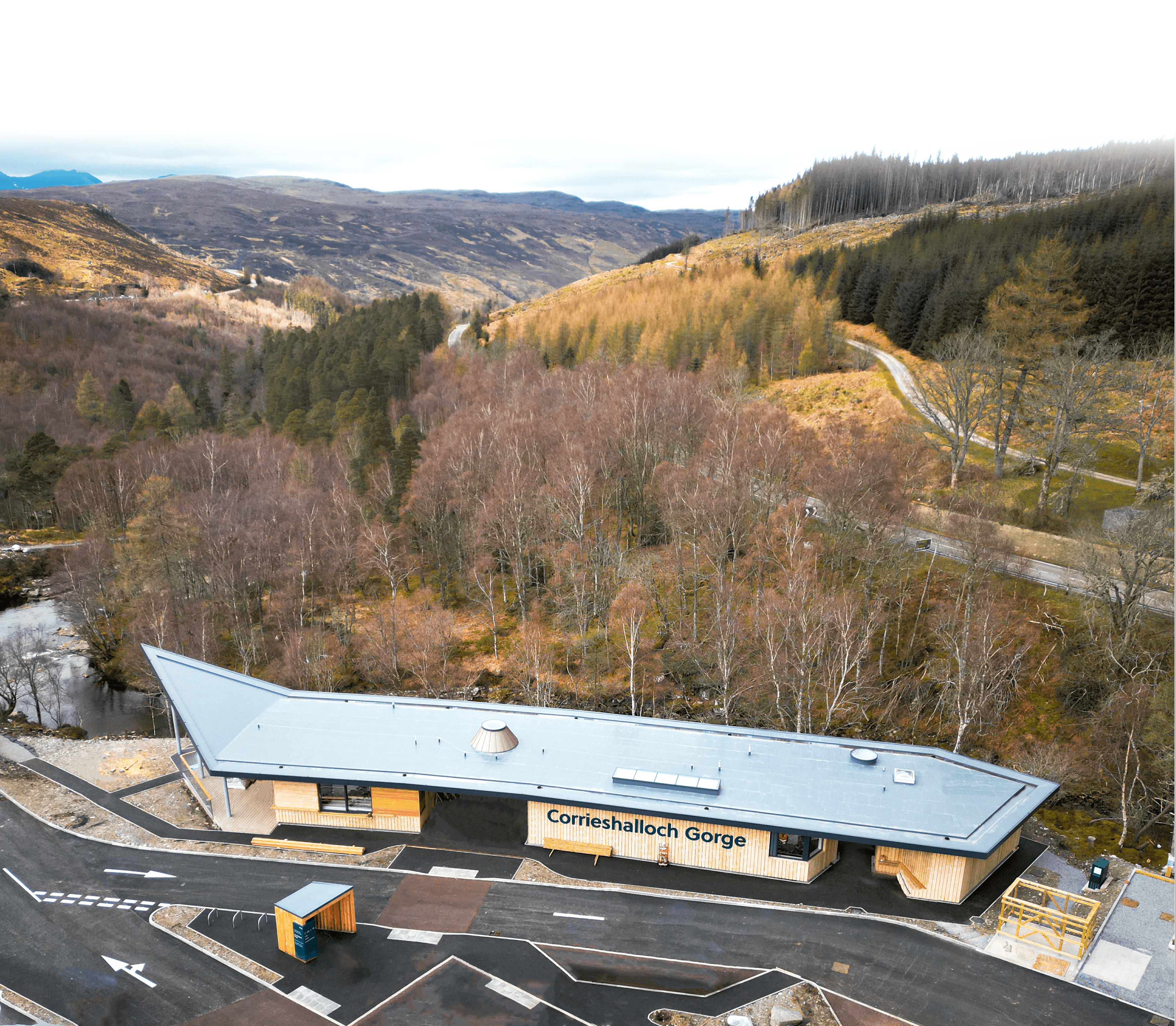 The Corrieshalloch Gorge Visitors Centre was implemented by the National Trust for Scotland, has opened this year. The idea behind this new build, situated in the stunning nature reserve of northern Scotland, was to improve the infrastructure in the area and provide a hub for visitors of the Gorge.